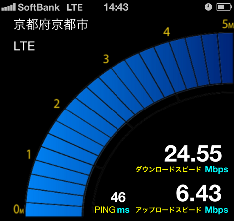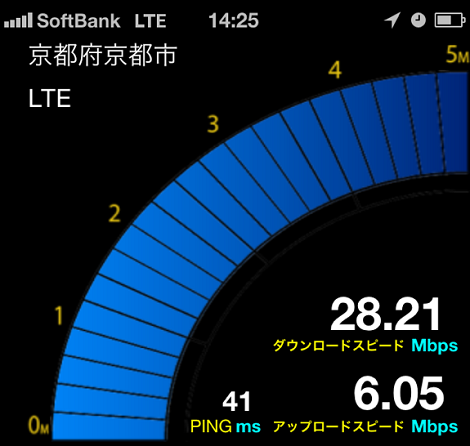 京都市内にお住まいの方なら予想以上に、ソフトバンクのLTEのエリアが広いです、しかもめっちゃ速いです!!