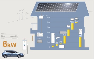 簡単に説明しますと、リーフを深夜電力で充電します、そして電気が満タンになったリーフで昼間の家で使う電気を、まかなうという使い方です。