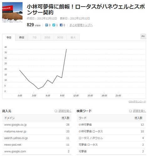 といことは、作成した「まとめ」は、「NAVERまとめ」のトップページに掲載されるより、フォロワーの多い人につぶやいてもらうか、友人の多い人に、Facebookで「イイネ!」ボタンを押してもらうのが効果的だと思います。
