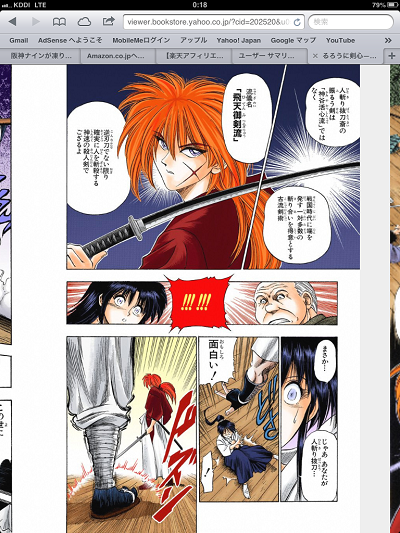 この画像は、私が実際に「iPad mini」で、「るろうに剣心」を読んでいた画面です。