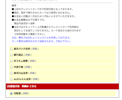 最近、楽天でも「auかんたん決済」を利用出来るお店が増えて来たので、かなり便利に利用出来ます、使い方は簡単で、決済方法を「auかんたん決済」を選んで注文するだけです。