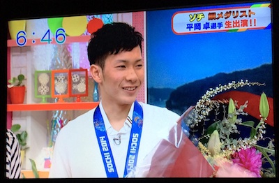 ソチ五輪のスノーボードハーフタイプで見事に3位表彰台を獲得した、平岡卓選手が朝日放送の「おはよう朝日です」に生出演しました。関西では有名な番組ですが、平岡卓選手が奈良県出身と言う事もあって出演が実現したようです。