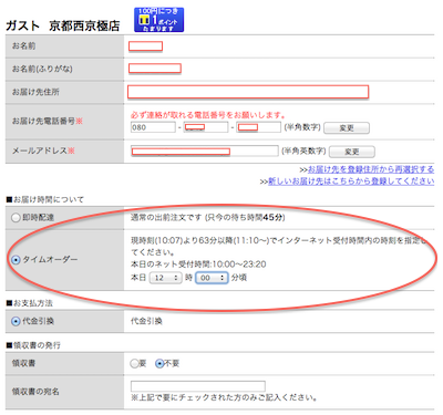 是非、出前館の時間指定のサービスをフル活用して下さい!!